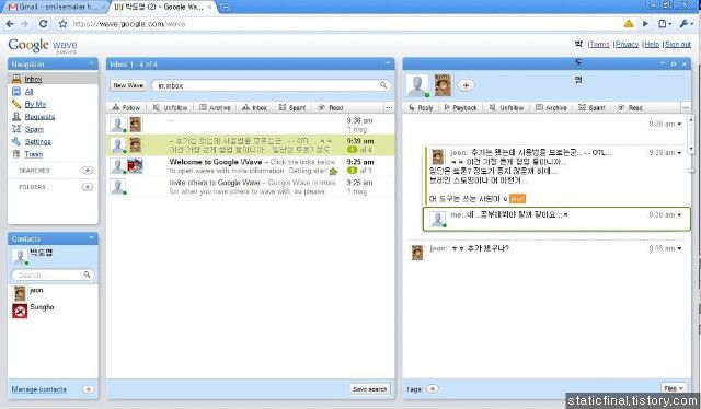 이 재미있는 구글 웨이브는 내일좀 만지작 거려 봐야겠다. ㅋ